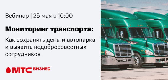 Приглашаем вас на вебинар: «Мониторинг транспорта: Как сохранить деньги автопарка и выявить недобросовестных сотрудников» 25 мая в 10:00 (Мск).