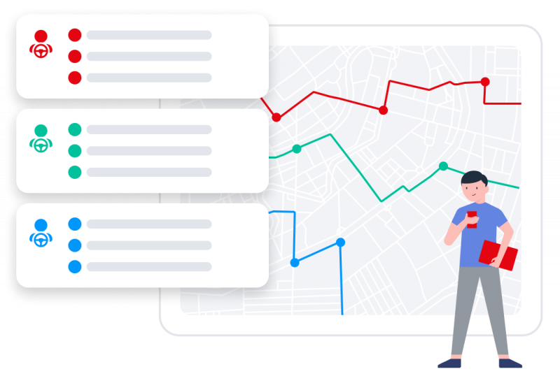 Отмечайте контрольные точки на карте или выбирайте из ваших объектов (клиенты, склады, офисы и т.д.). Настраивайте каждую из них: время прохождения, допустимое опоздание, радиус. По каждой точке отображается ее статус: посещена или нет, вовремя, раньше или с опозданием.